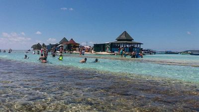 Ilha colombiana San Andrés desfruta do mar azul do Caribe